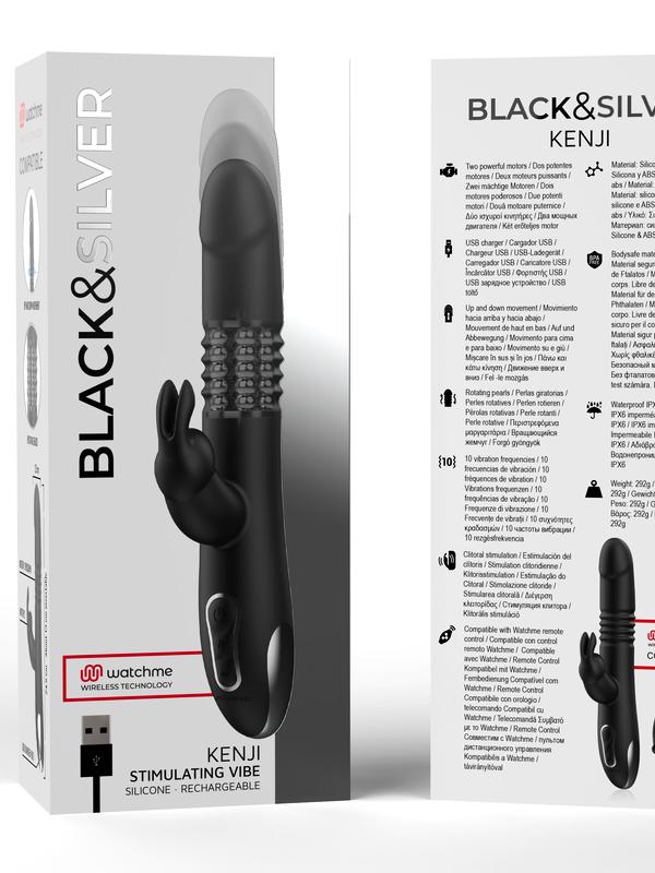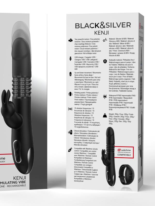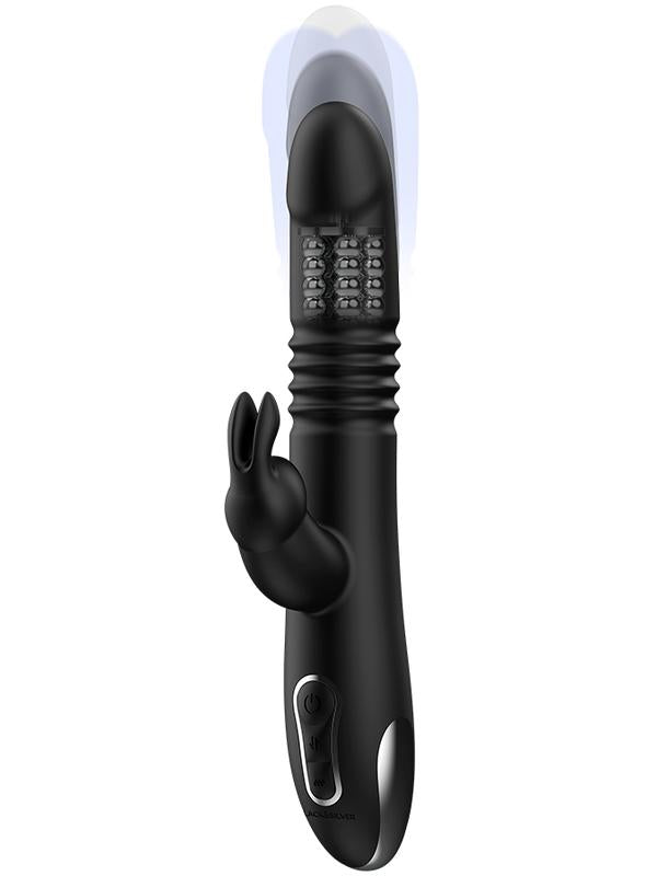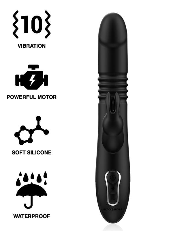 Black&Silver lancia la nuova collezione di rabbit con i sistemi UP&DOWN e Rotazione, entrambi per la prima volta, in un unico prodotto! La finitura in silicone ultra morbido di questo giocattolo è un vantaggio in più per gli orgasmi più esigenti. Godi contemporaneamente della stimolazione clitoridea effettuata dal piccolo coniglietto, della stimolazione del punto G affidata all'asta principale, che però non si accontenta: alle sue potenti vibrazioni aggiunge un movimento rotante (classico in ogni rabbit che si rispetti) ed uno UP&DOWN per una ulteriore stimolazione del punto G. Magnifique! Questo prodotto è realizzato interamente in silicone privo di ftalati e dunque sicuro per il corpo e compatibile anche con le pelli più sensibili. Caratteristiche Lunghezza : 24.5cm Diametro : 3.5cm Ricaricabile Waterproof