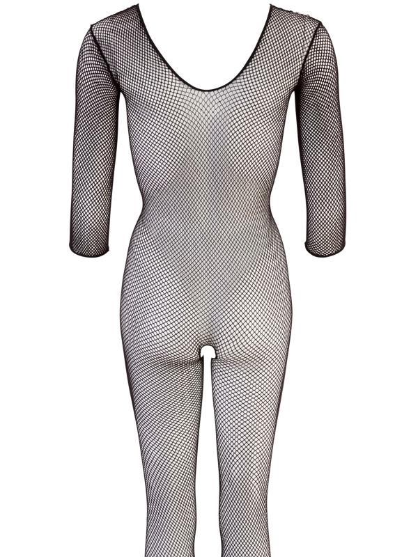 Catsuit trasparente a rete a maglia media, elastica, con maniche lunghe e apertura zona inguinale. Con il piede. La più classica della catsuit in rete a maglia media. 100% Poliamide taglia unica S-L