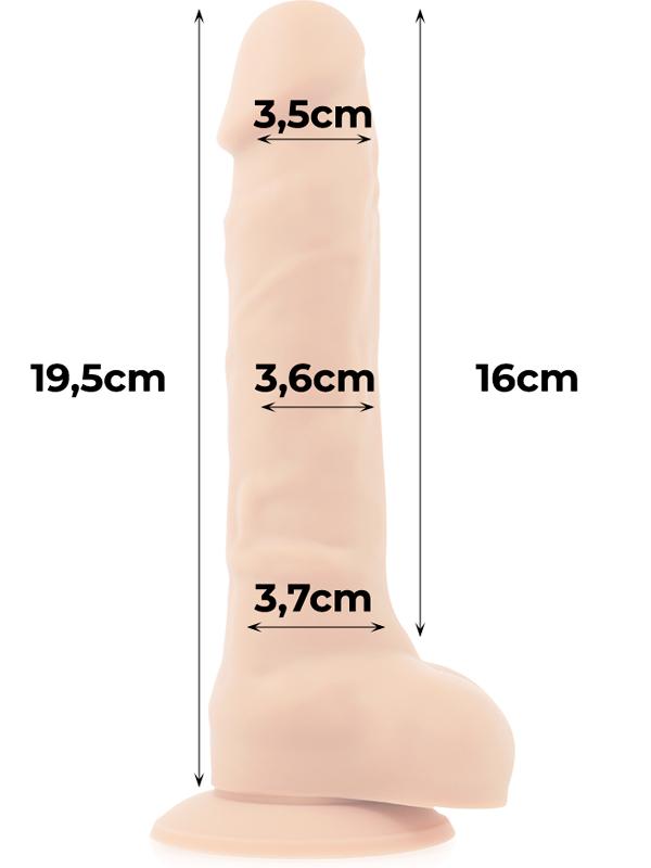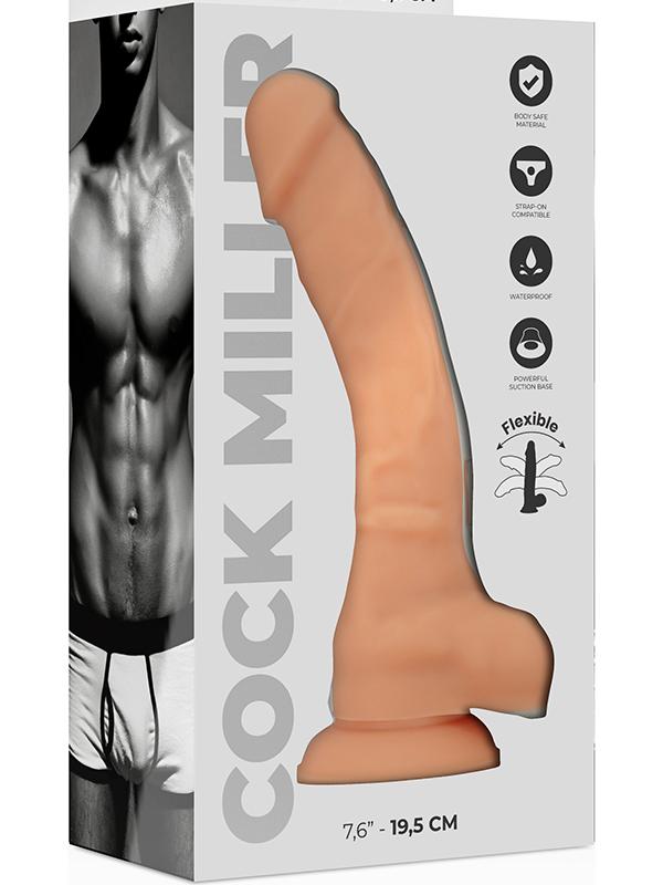 COCKMILLER offre una gamma di dildo realizzati in silicone ipoallergenico di alta qualità a doppia densità. Al suo interno contiene un anima rigida, che ti da la possibilità di curvarlo a piacimento. Il corpo duro posto all'interno del dildo farà si che quest'ultimo rimanga sempre nelle forme che desideri. Questo grazie alla rivoluzionaria formula brevettata del materiale cocksil, utilizzato per realizzare l'anima interna di questi dildo, che dona un'incredibile elasticità e maneggevolezza. Misure Lunghezza : 19,5 cm Diametro :3,7 cm