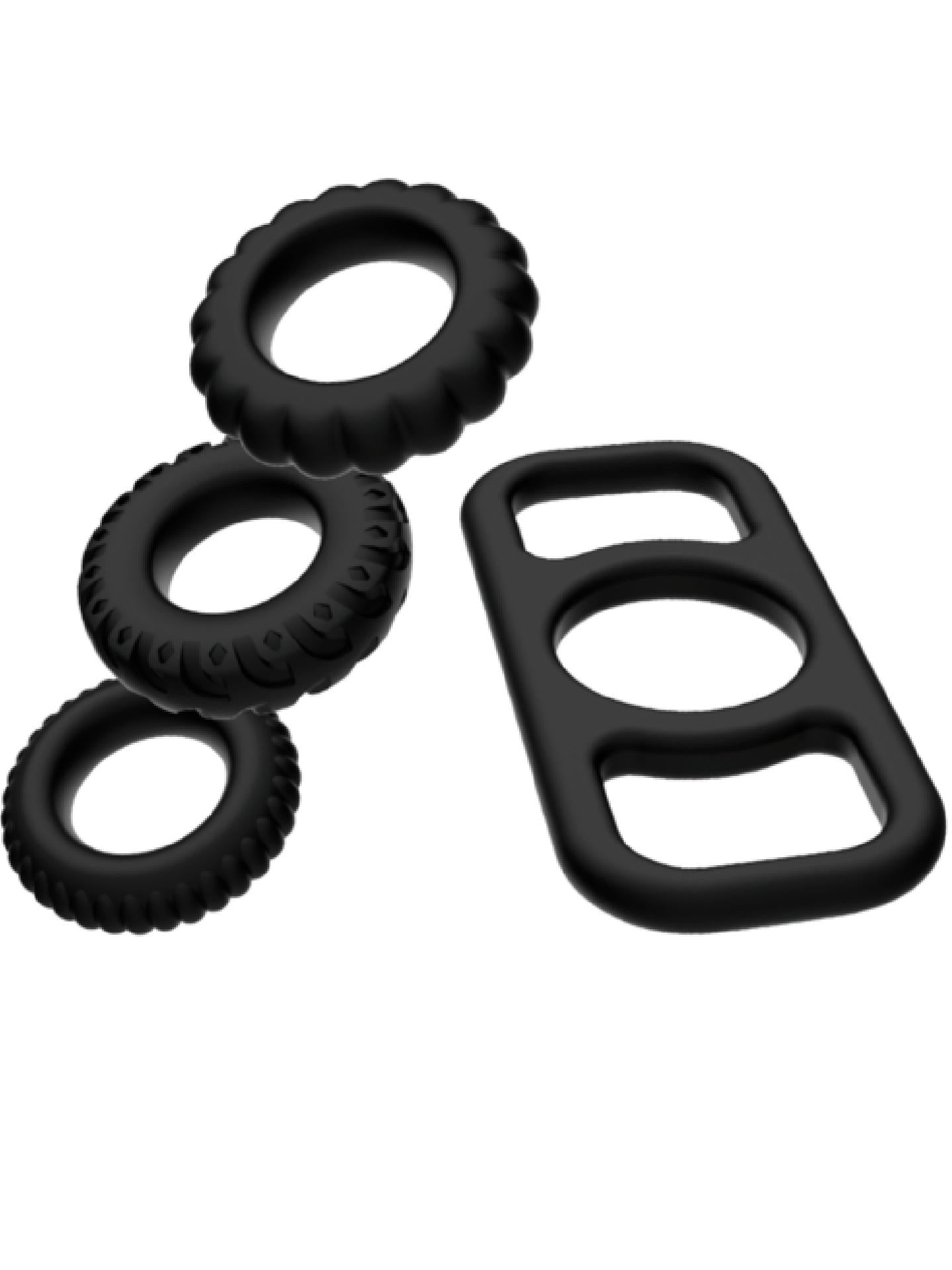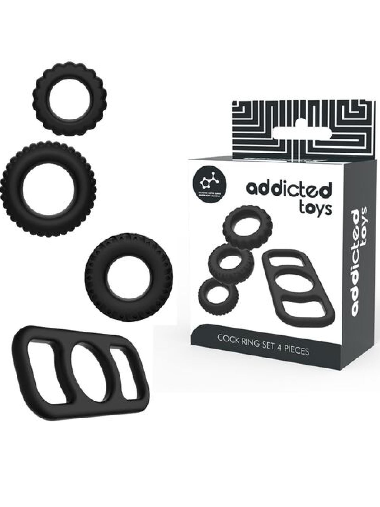 Se stai cercando erezioni di prim'ordine, lunghe e durature, sensazioni mai prima d'ora, non cercare oltre. Addicted Toys ti offre ciò che stavi cercando. Con questo set di anelli in morbido silicone hai tutto il necessario per vivere un'esperienza sessuale strabiliante. Scegli tra quattro dimensioni e forme o combinali come preferisci grazie alla loro flessibilità. Misure: Anello 1: diametro esterno: 3,6 cm diametro interno: 2,2 cm Anello 2: diametro esterno: 4 cm / diametro interno: 2,1 cm Anello 3 Diametro esterno: 4,2 cm (diametro interno: 2,4 cm Anello 4: diametro interno: 2,8 cm