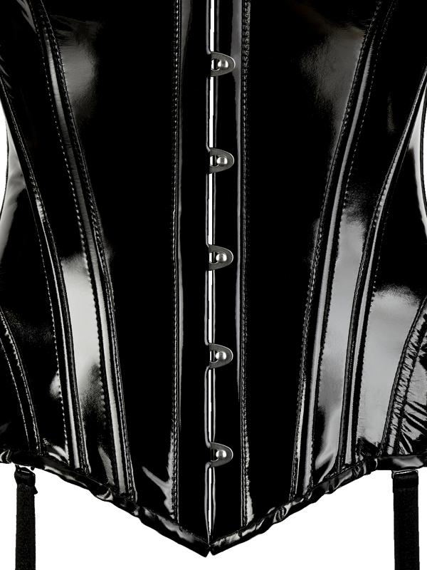 Corpetto elegante e sexy in vinile 6 bretelle regolabili e rimovibili Chiusura con gancio sul davanti Allacciatura sul retro Ossa modellanti integrate Un capo di abbigliamento nero brillante per donne sicure! Questo corpetto sexy è realizzato in vinile nero e attira davvero l'attenzione erotica. Le curve sono enfatizzate in modo sexy perché il corpetto è più lungo del solito e ha anche un materiale che copre anche i fianchi. Le ossa modellanti integrate conferiscono a chi lo indossa una silhouette estremamente sexy, l'allacciatura decorativa sulla schiena completa perfettamente il look. La chiusura a gancio nella parte anteriore consente di aprire e chiudere il corpetto molto facilmente. Le 6 bretelle sono regolabili e rimovibili. 100% poliestere, rivestimento in poliuretano. Senza perizoma e calze.
