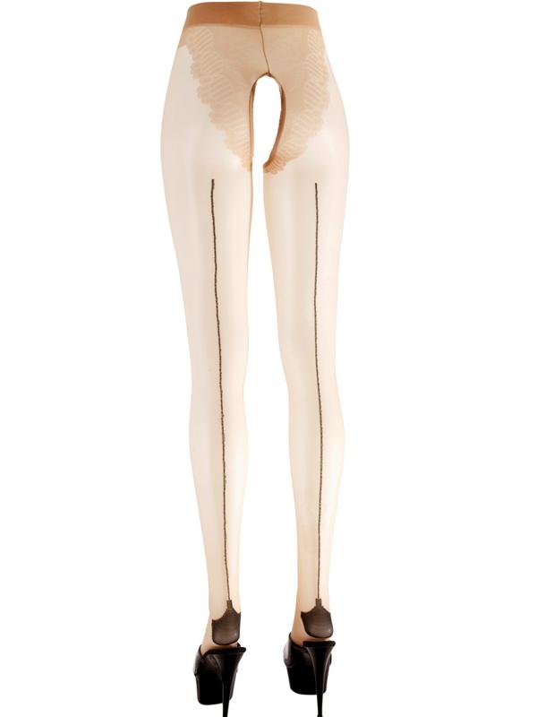 Collant aperte sul linguine, l'apertura sale sul retro verso i glutei lasciando tutto scoperto. Una deliziosa rifinitura in rete copre la parte superiore fino alla vita. Il tutto è reso ancora più sexy dalla riga posteriore lungo tutta la gamba fino al tallone rinforzato. Sofisticato eye-catcher! Semplice collant da reggicalze con bella parte a mutandina e invitante cavallo aperto. Inoltre, la cucitura decorativa e il tacco alto sul retro assicurano gambe infinitamente lunghe. 20 den. 86% poliammide, 14% elastan.