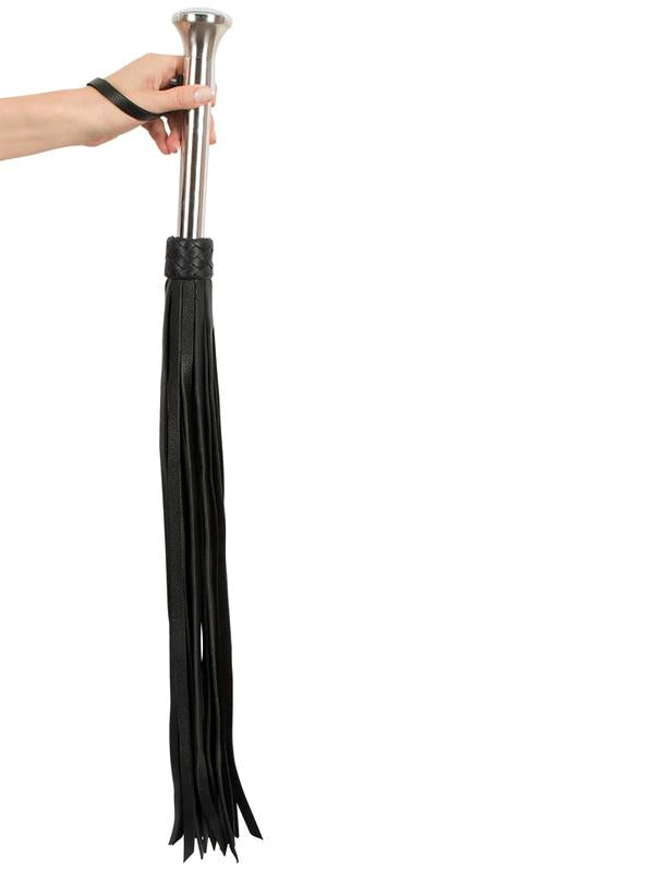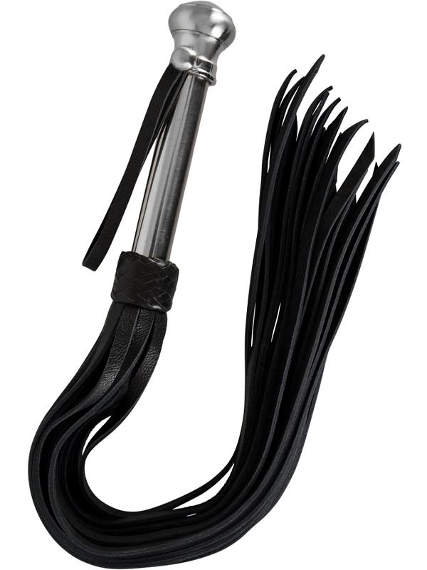 Stupendo flogger dedicato a persone esperte! Equilibrato, bilanciato, pesante e preciso, è veramente uno strumento che adorerai. Serve solo che tu abbia una certa esperienza con l'utilizzo dei flogger per goderne appieno le caratteristiche. Appena lo avrai in mano ed inizierai a provarlo, sappi che ti verrà una enorme voglia di averne uno in ogni mano, capisciammè. Flogger o Gatto a Nove Code in metallo e cuoio con numerose fronde Con manico in acciaio inossidabile Alta qualità e robusto 73 cm di lunghezza …parla più di mille parole! Frusta con larghe fronde in cuoio e manico in acciaio inossidabile. C'è un passante per il polso sul manico. Nero/color argento. Lunghezza totale ca. 73 cm. Pelle (vera pelle bovina) conciata senza cromo, acciaio inossidabile. Contiene parti non tessili di origine animale. cinghie di cuoio larghe e impugnatura in acciaio inox completa di anello. Complessivamente ha una lunghezza di circa. 74 cm.