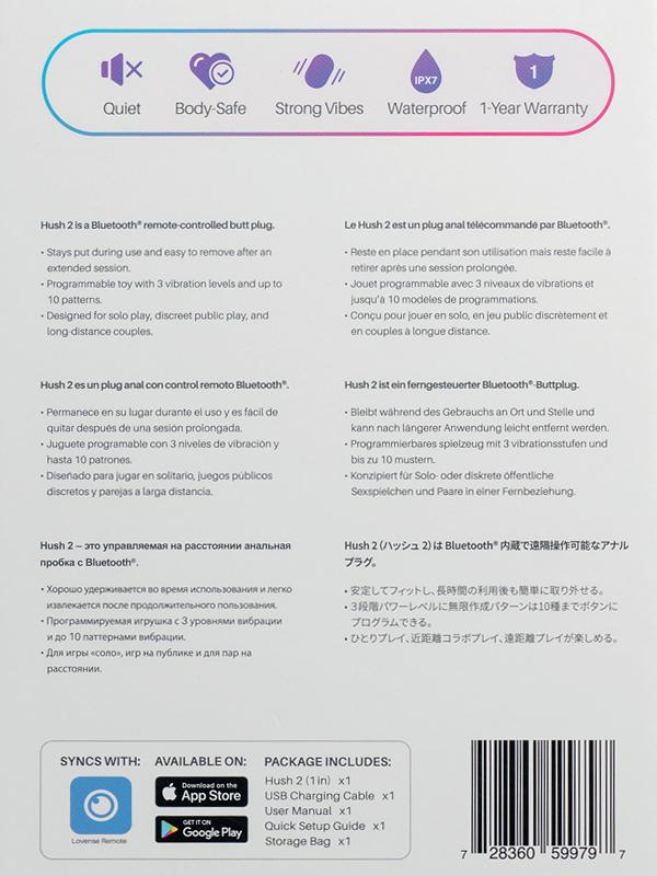 Bello, potente, piacevole al tatto e comandabile a distanza... da avere! Hush 2 è la seconda generazione del potente plug anale controllabile tramite Bluetooth targato Lovense. Il nuovo design elegante e liscio lo rende più comodo sia per le brevi che le lunghe sessioni di utilizzo, ovunque tu ti trovi. La comoda applicazione, disponibile gratuitamente su tutti gli store di riferimento, ti consente: Controllo a distanza ravvicinata - L'interfaccia di controllo del tocco e dello scorrimento è perfetta per il gioco solitario o i preliminari con un partner! Personalizza le tue vibrazioni - Una volta entrati nella modalità di programmazione nella nostra app, puoi creare e memorizzare 10 diversi modelli di vibrazione Controllo a lunga distanza: la nostra app consente a un/a partner di assumere il controllo da qualsiasi distanza. Pattern illimitati: crea, scarica e condividi modelli di vibrazione. Vibrazioni basate sulla musica: sincronizza con la tua musica preferita. Suono attivato - L'app utilizzerà il microfono del tuo smartphone e vibrerà in base ai suoni intorno a te.