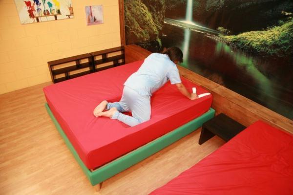 Un'invenzione unica e innovativa, il materasso per l'amore è composto da tre maniglie poste sulla testata del materasso e da un blocco di materasso estraibile posto al centro sul lato destro. Si estrae il blocco di materasso quando la coppia deve fare l'amore. Riposizionando il blocco, il materasso ritorna piano per dormirci sopra. LE POSIZIONI DA ASSUMERE SUL MATERASSO PER L'AMORE (vedi foto): La donna coricata può aggrapparsi alle maniglie poste sulla testata del materasso. Questa posizione le dà modo di sentirsi parte integrante con il materasso. L'uomo si adagia sulla donna con le gambe piegate ed infossate nel materasso. Quando i due corpi dell'uomo e della donna sono congiunti le posizioni della coppia consentono di fare l'amore più comodamente e più piacevolmente. IL KIT COMPRENDE: Un materasso matrimoniale per l'amore. Un set completo di lenzuola con federe specifico per il materasso. CARATTERISTICHE TECNICHE: Materasso a zone di portanza differenziata per sostenere la persona adattandosi alla diversa conformazione delle varie parti del corpo. Composto da un'unica lastra di HR alta densità ed alta portanza. Grazie alla particolare sagomatura della lastra, la portata è differenziata in zone, garantendo l'adattamento delle varie parti del corpo al materasso in proporzione al peso e alla loro conformazione. La struttura della lastra, inoltre, è particolarmente indicata per favorire una traspirabilità ottimale grazie al costante ricambio d'aria che evita la formazione di umidità. ZONE A PORTATA DIFFERENZIATA - MASSELLO UNICO SAGOMATO E CONTROSAGOMATO ALTA TRASPIRABILITA' - ALTEZZA 25 cm FINITO ORTOPEDICO, ERGONOMICO, ANALLERGICO, IGNIFUGO (TESSUTO TEFLON BIANCO), OLEOREPELLENTE, IDROREPELLENTE, SCHIUMATO. MISURE: 190 X 160 cm CONSEGNA IN 20-25 GG DAL GIORNO DELL'ACQUISTO Su richiesta disponibile anche in misure diverse (più grandi e più piccole) Disponibile per forniture alberghiere. É possibile ordinare altri set di lenzuola appositi.