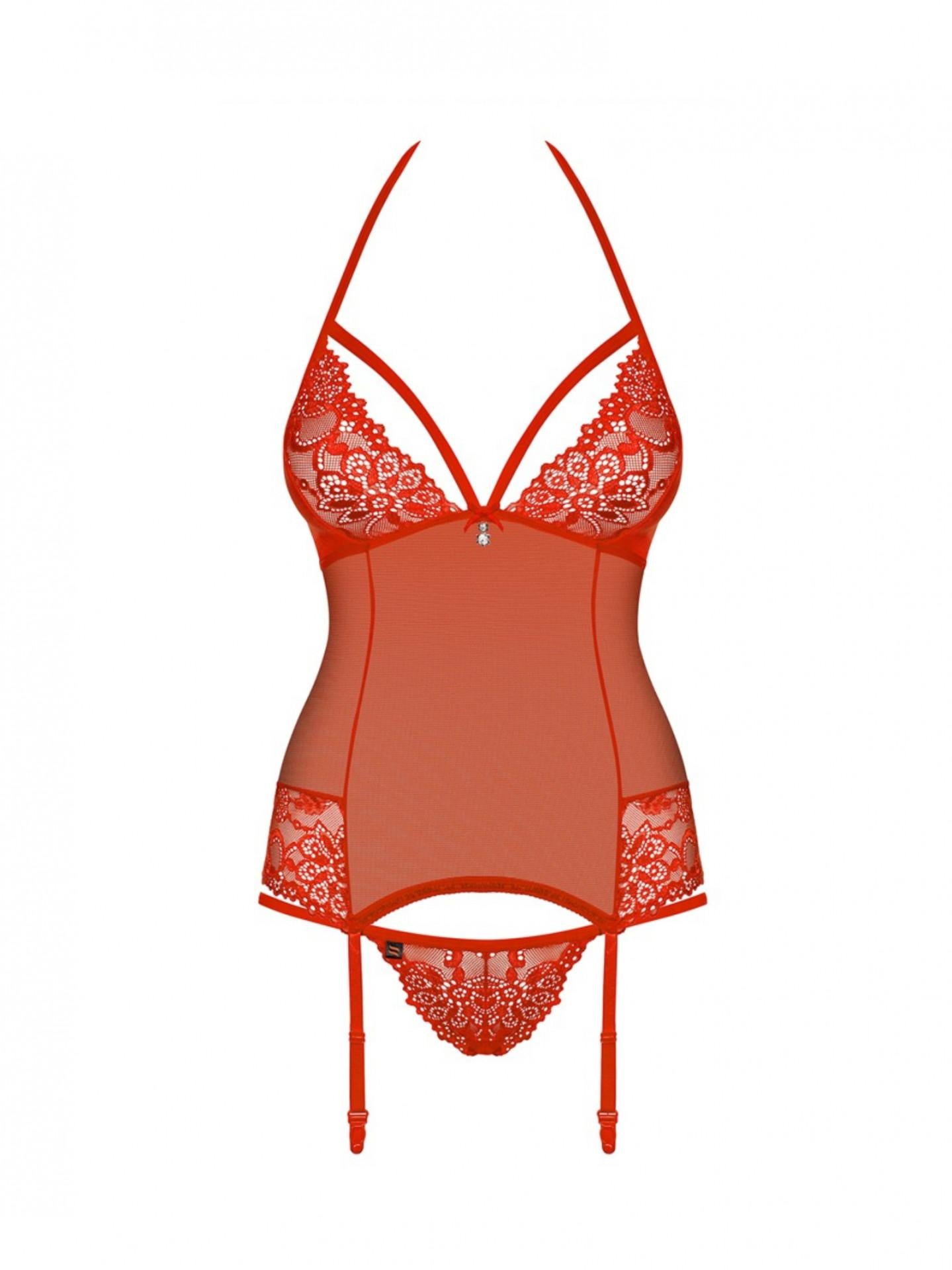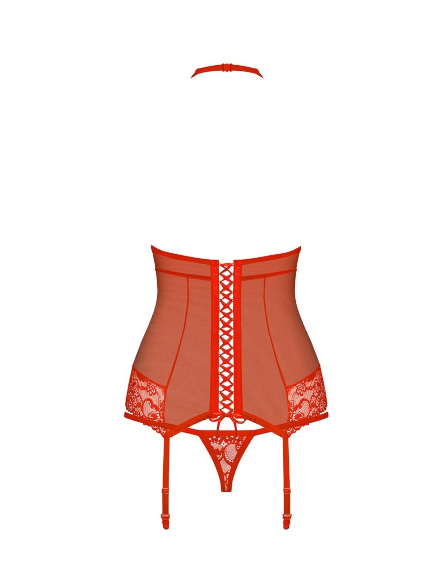 Attrazione erotica! Questo basque rosso realizzato da Obsessive presenta uno scollo all'americana e inserti in pizzo che mettono le curve femminili in evidenza così da poter sfoderare tutta il vostro animo seducente.. Le cinghie del reggiseno e delle bretelle sono regolabili. Le calze non sono incluse.