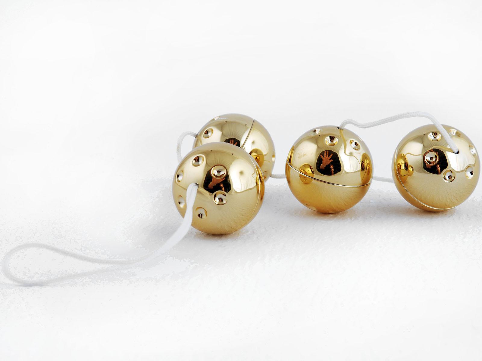 palline cinesi gold vibro dorate con laccetto. Le palline sono cave e all'interno contengono delle palline più piccole e pesanti, in questo modo producono delle vibrazioni muovendole. Chiamate anche palline delle Geishe, in quanto il movimento ritmico dei muscoli vaginali, che le fanno muovere una volta introdotte, permettono di allenare e rendere più tonici questi ultimi. Lo scopo finale è quello di arrivare ad avere una padronanza dei muscoli vaginali che permette di far raggiungere l'orgasmo al partner maschile solo con questo massaggio durante il coito. Naturalmente durante l'allenamento le palline producono piacere, stimolando non solo le pareti interne della vagina ma soprattutto il punto G. Una buon ritmo è di circa una contrazione al secondo per serie di 2 o 3 minuti l'una.