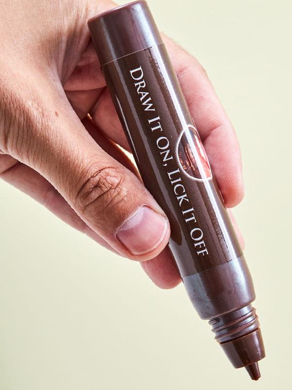 Questa pratica matita tubetto di cioccolato permette di disegnare sulla pelle, tua o delle altre persone, e poi poter leccare la tua opera d'arte. È commestibile al 100%, ha un buon odore, perfetto per il piacere intimo e goduria dei sensi. Gusto cioccolato al latte.
