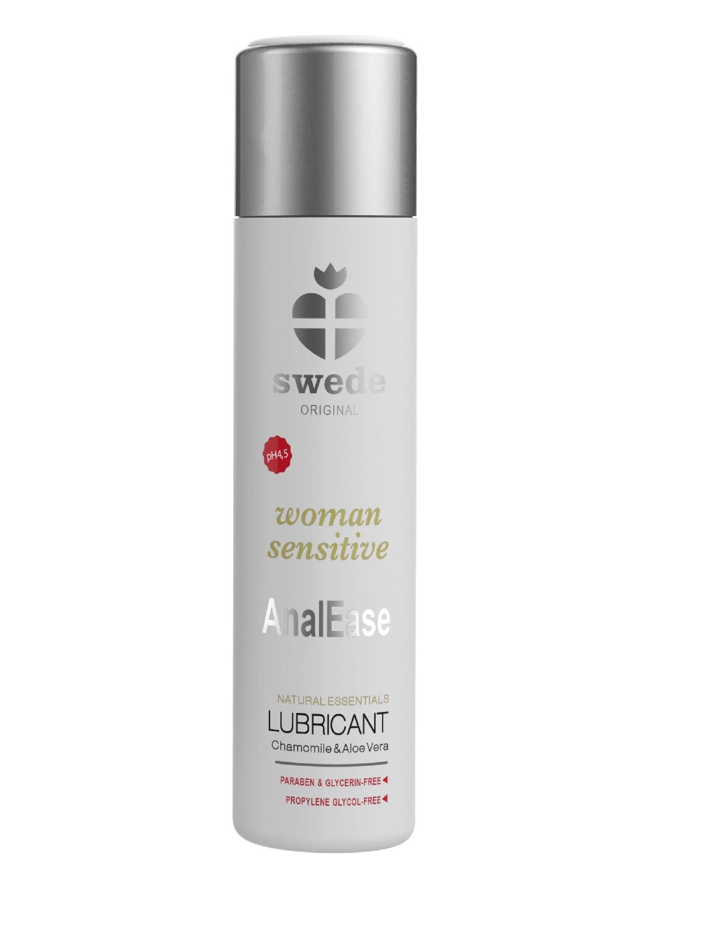 Woman Sensitive AnalEase nasce dall'innovativa formula a base d'acqua Aqua/Comfort di Swede. Sono stati aggiunti diversi principi attivi naturali che hanno effetti nutrienti e aiutano a prevenire irritazioni e fastidi durante il sesso anale: Aloe Vera: Swede ha aggiunto generose quantità di Aloe Vera. L'Aloe, oltre ad avere dei poteri curativi ben conosciuti in tutto il mondo, contiene anche alti livelli di Glicoproteine, la componente strutturale del fluido vaginale naturale. Estratto di Camomilla: è un agente antiallergico con effetti anti-irritazione. Ha anche proprietà antinfiammatorie e antisettiche. Caratteristiche : -Di lunga durata e non appiccicoso - Senza glicerina e parabeni - Senza glicole propilenico - Principi attivi naturali - Basso rischio di irritazione - pH bilanciato - Facile da risciacquare c - Non lascia residui - 60 ml